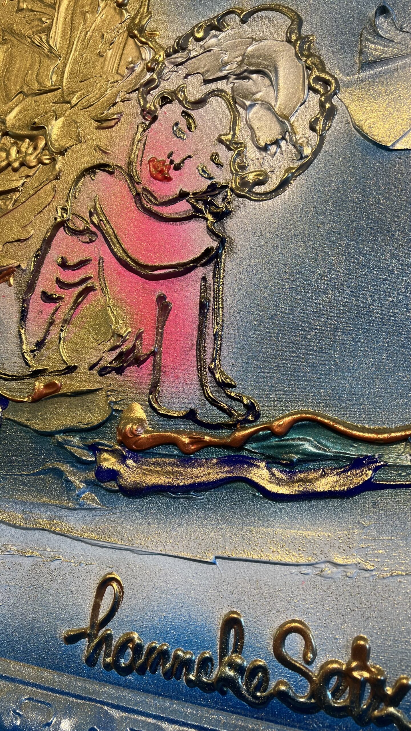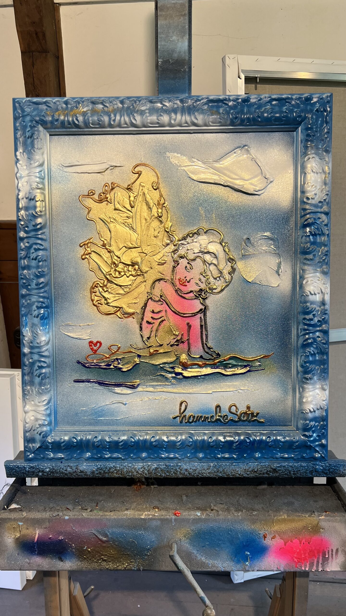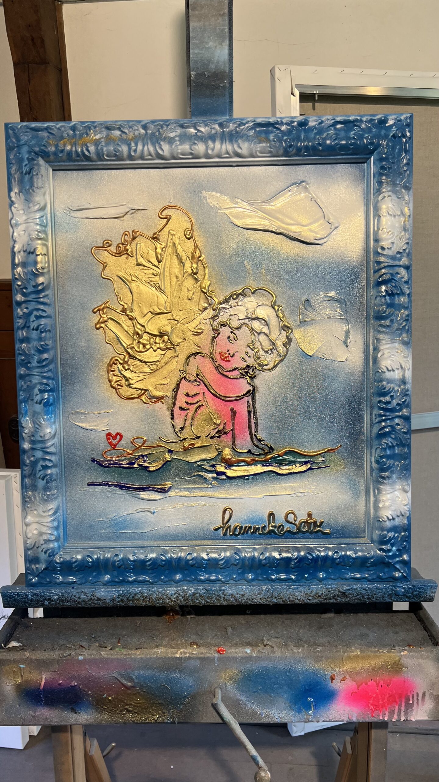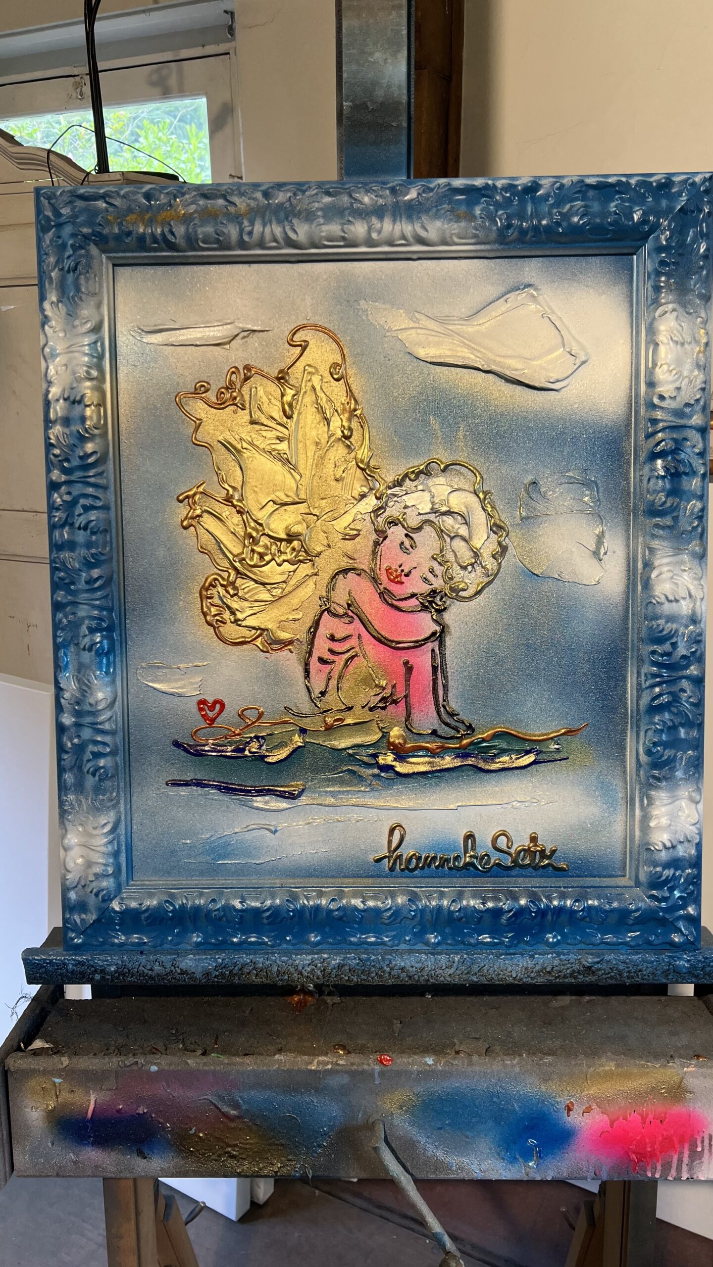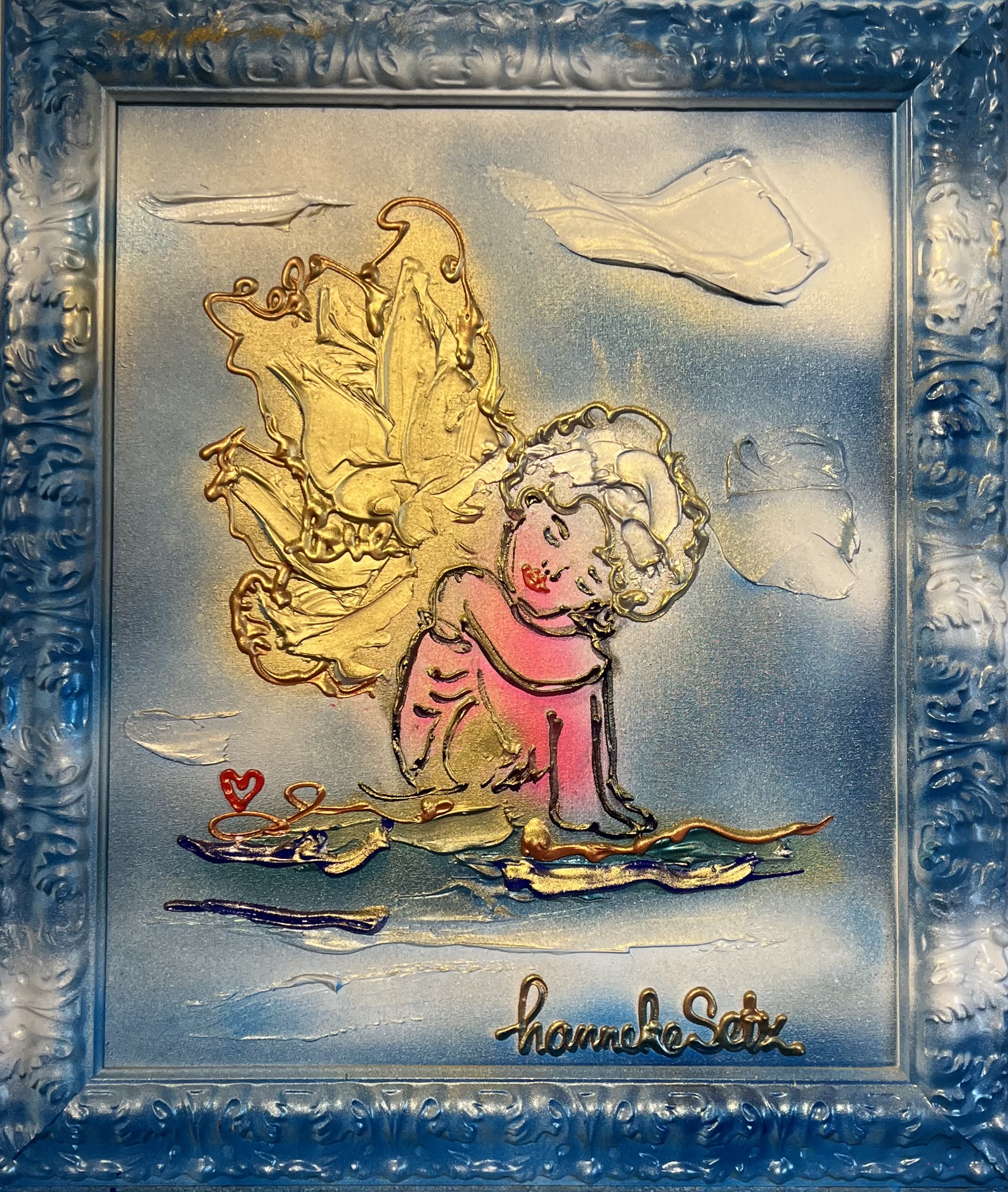 Schilderij van een engel inclusief meegeschilderde lijst